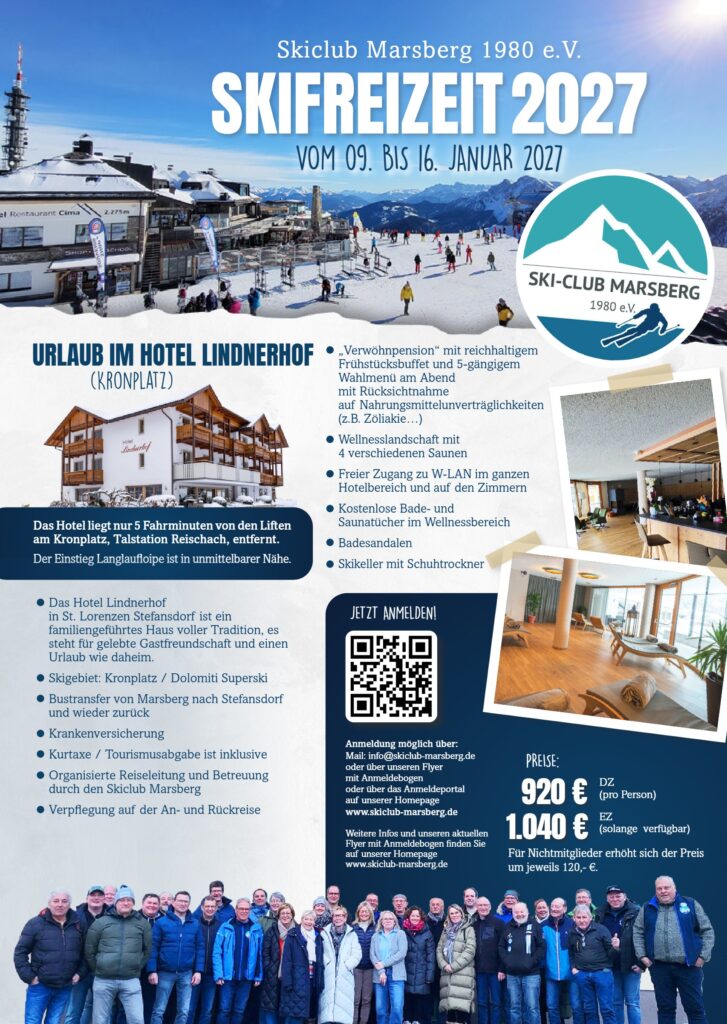 Hallo liebe Freunde des Wintersports – ab sofort könnt ihr euch für die Skifreizeit 2027 anmelden!